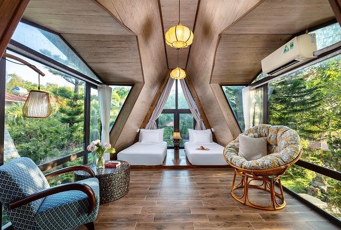 Tiện ích: Phòng có tầm nhìn hướng ra sân vườn, có tivi, trà, cafe, điều hoà, nhà tắm,...