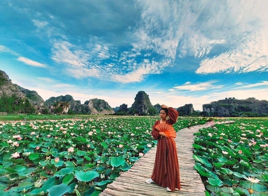11h30: Tới Hang Múa, Quý khách bách bộ qua những lối đi vòng vèo được bao phủ bởi cây xanh và các kiến trúc non bộ đẹp mắt và sau đó là hành trình chinh phục đỉnh núi Hang Múa với 500 bậc đá. Tới đỉnh núi Múa, thu vào trong tầm mắt của Quý khách là tất cả đất trời của mảnh đất Hoa Lư rộng lớn với vẻ yên bình nhưng lộng lẫy như một bức tranh thủy mặc khiến không ít người chẳng thể kìm lòng mà vỡ òa cảm xúc. Trên hành trình trở lại, Quý khách sẽ ngang qua khu vực Đầm sen nằm giữa những rặng núi đá vôi tạo nên một khung cảnh cực kỳ thơ mộng và cổ trang. Quý khách có thể thuê những bộ đồ cổ trang để chụp hình tại đây.