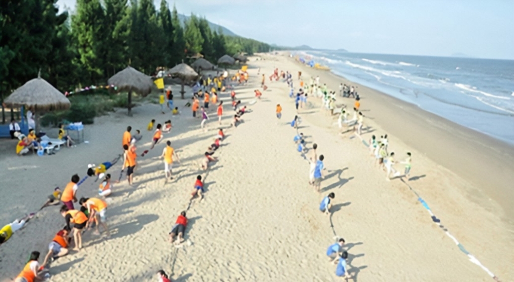 Đoàn về tới khách sạn, nhận phòng nghỉ ngơi và tự do tắm biển Nhật Lệ - Là một trong những chốn bồng lai tiên cảnh, đất trời hòa quyện như thế. Với cảnh sắc hoang sơ, hùng vĩ của bãi biển xanh trải dài tít tắt cũng bờ cát trắng phau, mịn màng, biển Nhật Lệ đã được bầu chọn là một trong 10 bãi biển đẹp nhất Việt Nam